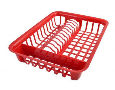 Escurridor de vajilla con capacidad para 13 platos y espacio para cubiertos. De fácil limpieza.
