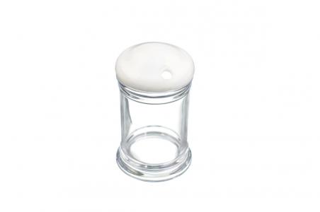 Fabricado en material plástico, símil cristal, muy resistente, con tapa color .