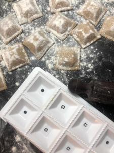 Molde para elaborar pastas caseras. Los moldes se encastran uno con otro, permitiendo realizar mayor producción al mismo tiempo. Apto para lavavajillas.